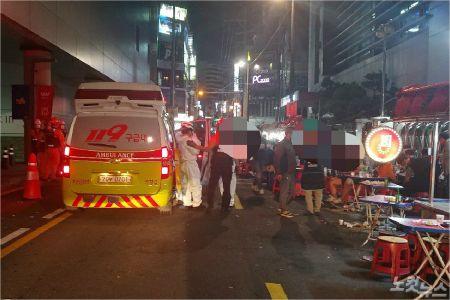 K3 승용차를 몰던 20대 A씨는 이날 오전 4시 27분쯤 부산 부산진구 서면 인근 포장마차 거리에서 행인 2명을 충돌했다.