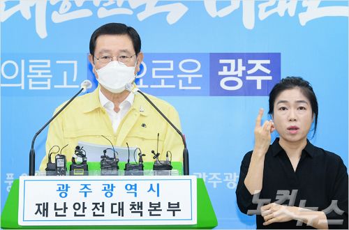 이용섭 광주시장은 27일 오후 광주시청에서 코로나19 브리핑을 갖고 "정부 방침에 따라 광주시에서도 오는 28일부터 10월 11일까지 2주간 사회적 거리두기 2단계 조치를 더 유지한다"고 밝혔다.