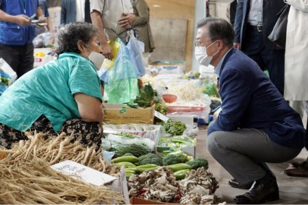 청와대 강민석 대변인에 따르면, 문 대통령은 장바구니 카트를 직접 끌며 점포에 들를 때마다 "요즘 경기가 어떠시냐"는 질문을 했다. 문 대통령은 손님이 줄고 가격이 올라 매출이 예년만 못하다는 상인들의 걱정에 안타까움을 나타내기도 했다.