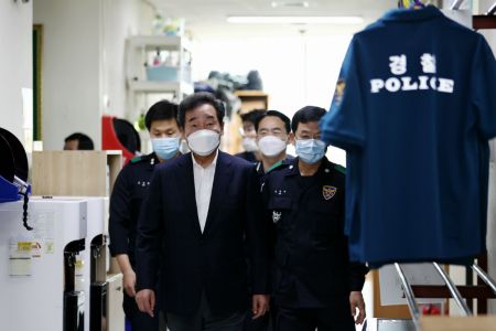더불어민주당 이낙연 대표가 추석연휴인 2일 오전 서울지방경찰청 기동본부에 방문하고 있다. (사진=연합뉴스)