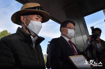 북한 피격 사망 공무원 A씨의 형 이래진씨가 6일 감청기록 등 정보공개 청구하기 위해 서울 용산구 국방부 민원실로 향하고 있다.
