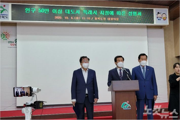 청주시와 보은군을 제외한 충북 9개 시·군이 6일 인구 50만 명 이상 도시의 특례시 지정을 반대하는 공동성명을 발표했다.