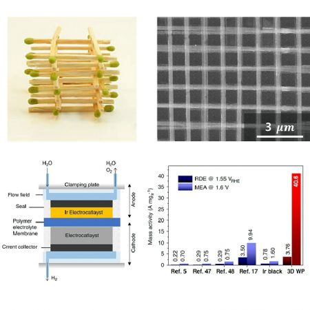 무작위적 형상과 배열을 가지는 기존 이리듐 촉매와 달리 '성냥개비 탑(Woodpile)' 형상의 3차원 이리듐 촉매 구조를 인쇄 방식으로 제작하는 기술을 개발한 것이다.
