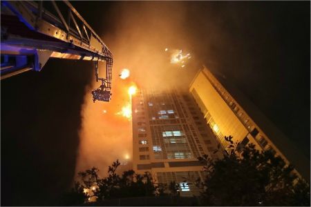 1시간30여분 만에 큰 불길은 잡혔지만 건물 외장재에 불씨가 남아 14시간이 지나도록 불특정 층에서 화염이 치솟았다.