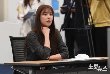 조폐공사 명예홍보대사인 배우 손담비가 14일 오전 서울 중구 대한상공회의소에서 열린 한국조폐공사 '2020 보안기술 설명회'에 참석해 조용만 한국조폐공사 사장의 인사말을 경청하고 있다.