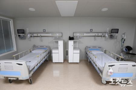 19일 서울 국립중앙의료원(중앙감염병병원) 내 중증환자 긴급치료병상(음압격리병동) 준공식이 열렸다. 사진은 음압격리병동 내 일반병실.