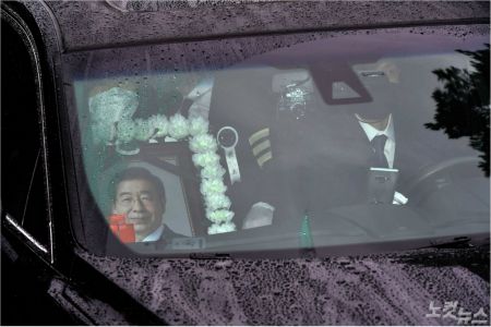 고 박원순 서울시장의 발인식이 열린 지난 7월 13일 서울 종로구 서울대학교병원 장례식장에서 운구 차량이 서울시청으로 향하고 있다. (사진=박종민 기자)