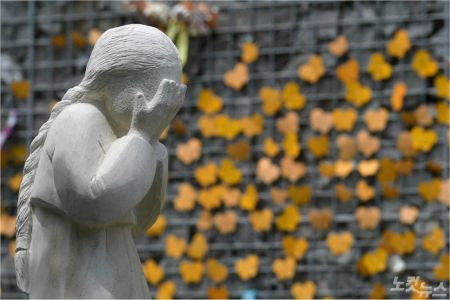 나눔의집 추모공원에 할머니들의 아픔을 표현한 조각상이 보이고 있다. (사진=이한형 기자/자료사진)