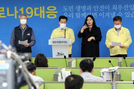 독감 백신 연관 사망사건에 대해 브리핑중인 제주도 보건당국.(사진=제주도 제공)
