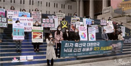 50여개 단체로 구성된 '행동하는 프로라이프'가 지난 16일 세종문화회관앞에서 '낙태관련 정부입법안 반대 기자회견'을 갖고 있는 모습.
