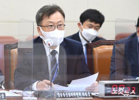 강상현 방송통신심의위원회 위원장이 23일 오후 서울 여의도 국회에서 열린 과학기술정보방송통신위원회 종합감사에서 의원 질의에 답하고 있다.