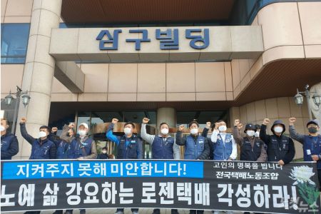 지점장의 갑질과 생활고 등을 토로하며 극단적인 선택을 한 로젠택배 부산 강서지점의 택배노동자 고(故) 김광택씨와 관련해 노동자들이 본사 측에 구조적인 대책 마련을 촉구했다.