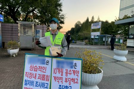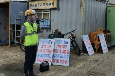 금속노조 거제통영고성조선하청지회 이김춘택 조직사업부장은 "비정상적인 기업의 행태"라며 "직장내 괴롭힘의 심각성을 사과하고 반성해야 한다"고 말했다.