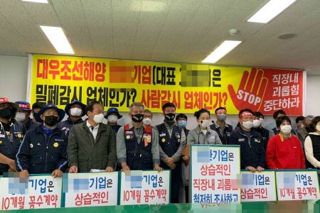 "밀폐구역을 감시하는 업체가 아니라, 직원들을 감시하는 업체였다."대우조선해양 하청업체 노동자들이 사생활 침해와 왕따 등으로 직장내괴롭힘을 당하고 있다며 잇따라 호소하고 나섰다.