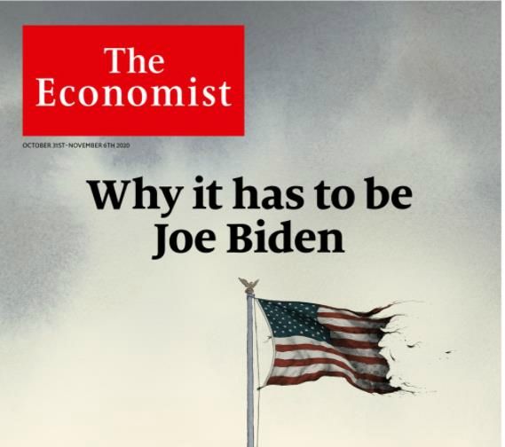 영국 시사주간지 이코노미스트는 31일 발간되는 최신호 커버스토리를 통해 민주당 대선후보인 조 바이든 전 부통령을 공개 지지했다.