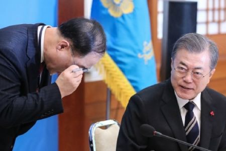 강민석 청와대 대변인은 "홍남기 부총리가 오늘 국무회의 직후 대통령께 사의를 표명했으나 바로 반려후 재신임했다"고 밝혔다.