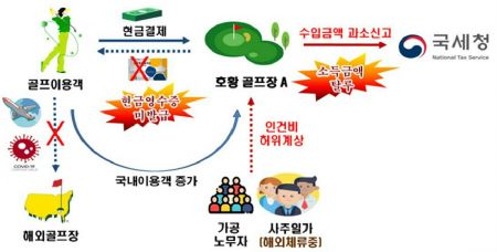 해외원정 골프이용객의 감소로 코로나19 반사이익을 얻어 호황을 누리면서도, 현금 매출누락 및 가공원가 계상으로 법인소득 탈루혐의의 골프장이 국세청의 조사를 받는다.(자료=국세청 제공)