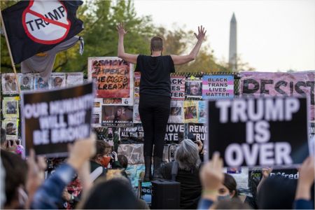 미국 대선 개표 나흘째인 지난 6일(현지시간) 워싱턴DC 백악관 인근 BLM(흑인 목숨도 소중하다) 광장에서 시위대와 활동가들이 개표 결과를 기다리며 '트럼프는 끝났어'(TRUMP IS OVER)라고 쓰인 팻말 등을 들고 집회를 벌이고 있다.(사진=연합뉴스)