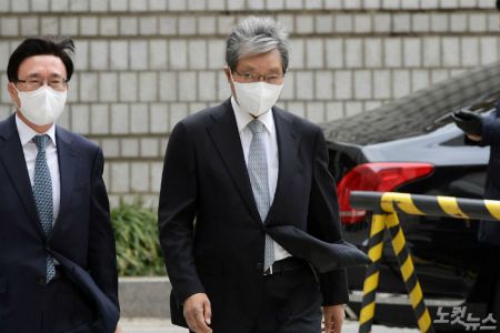 장충기 전 삼성 미래전략실 사장이 9일 오후 서울 서초구 서울고등법원에서 열린 `국정농단' 사건 파기환송심 재판에 출석하고 있다.(사진=이한형 기자)