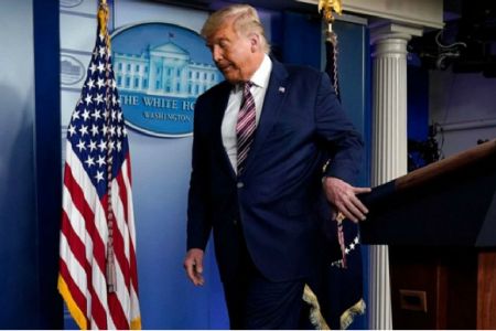 도널드 트럼프 대통령이 백악관에서 기자회견을 마치고 자리를 뜨고 있다. (사진=연합뉴스/자료사진)