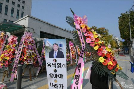서울 서초구 대검찰청 앞에 윤석열 검찰총장을 응원하는 화환이 놓여져 있다. (사진=이한형 기자/자료사진)