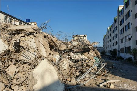 포항지진의 상처를 상징적으로 보여주는 이곳은 3년이 넘은 지금에야 철거작업이 한창 진행되고 있다. 현재 5개 동 중 3개 동이 철거된 상태로 이곳에는 '행복어울림센터'가 들어설 예정이다.