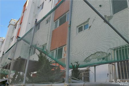 아파트 외벽 곳곳에는 지진으로 발생한 수많은 균열이 마치 혈관처럼 퍼져 있고, 일부 외벽은 힘없이 떨어져 나가 깊게 곪은 상처를 드러내고 있다. 아파트 출입구에는 혹시라도 외벽 파편이 떨어질 까봐 만들어놓은 안전펜스가 위태롭게 설치돼 있다.