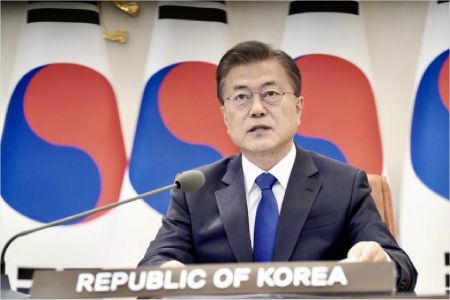 문재인 대통령이 14일 오후 청와대 집무실에서 '아세안+3 화상정상회의'에 참석해 발언하고 있다.(사진=연합뉴스)