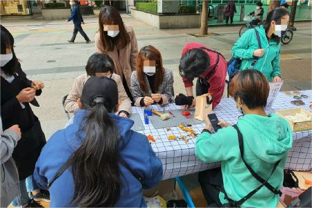 양천구 학교밖청소년지원센터 청소년들이 직접 만든 가죽공예품 판매와 함께 체험행사를 진행하고 있다. (사진=양천구 제공)