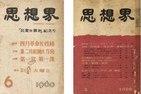 한국 잡지사의 거목 『사상계』는 1952년 여름에 임시수도 부산에서 『사상』 (思想)이라는 이름으로 처음 발행됐다. 1970년 5월호에 김지하의 「오적」(五賊)을 게재한 것을 당국이 문제 삼아 통권 제205호로 정간될 때까지 『사상계』는 약 20년 간 한국에서 지식장이자 공론장으로서 지대한 역할을 했다.