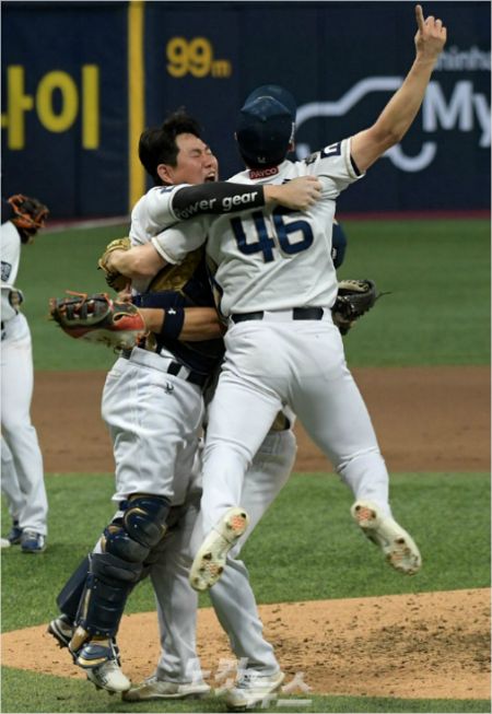 우승이 확정되는 순간 포수 양의지는 마무리 투수 원종현을 끌어안고 눈물을 흘렸다. 이동욱 감독을 비롯한 선수단 모두 그라운드로 뛰어나와 창단 첫 우승의 기쁨과 감동을 만끽했다.