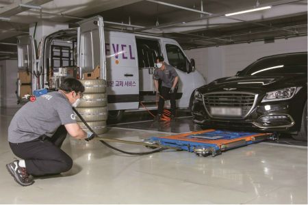 '넥스트레벨 GO' 서비스는 고객이 원하는 곳을 방문해 차량과 키를 건네받고, 타이어 전문점에서 타이어 교체한 뒤 다시 가져다 주는 '픽업&딜리버리 서비스'도 함께 시행한다. 10억원 한도의 보험에 가입해 고객이 믿고 맡길 수 있도록 했다.