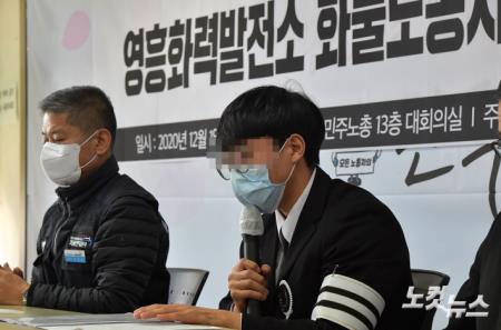 발언하는 영흥화력발전소 사망 노동자 자녀