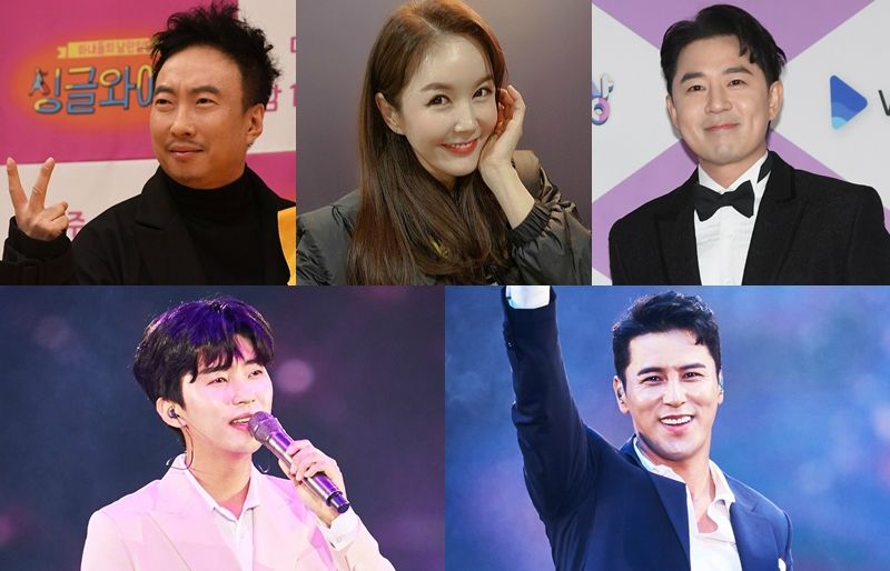 왼쪽부터 시계방향으로 방송인 박명수, 장영란, 붐, 가수 장민호, 임영웅 (사진=노컷뉴스 자료사진, 장영란 인스타그램, TV조선)