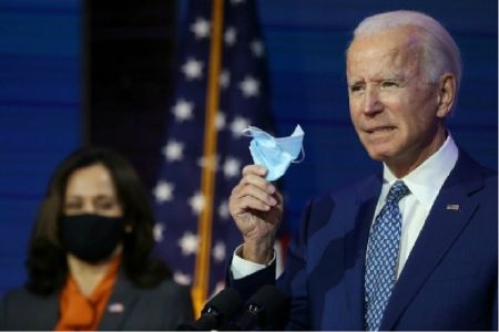 바이든 당선인은 공공기관의 건물 안과 대중교통에서 마스크를 반드시 착용해야 한다고 주문했다.