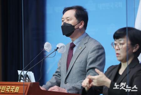 김기현 국민의힘 의원이 7일 서울 여의도 국회 소통관에서 추미애 법무부 장관 폭주 방지법 ‘검사징계법’ 개정안 발의 기자회견을 하고 있다.