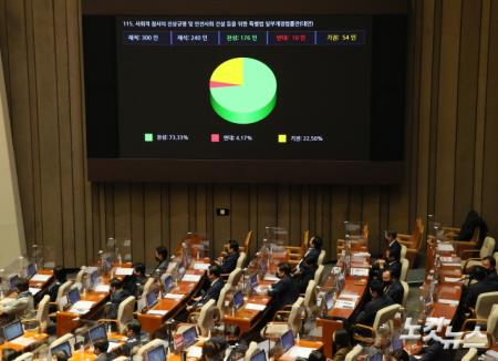 9일 오후 국회 본회의에서 사회적 참사의 진상규명 및 안전사회 건설 등을 위한 특별법 일부개정법률안(대안)이 통과되고 있다.