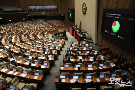 9일 오후 서울 여의도 국회에서 열린 본회의에서 교원의 노동조합 설립 및 운영 등에 관한 법률 일부개정법률안이 가결되고 있다.