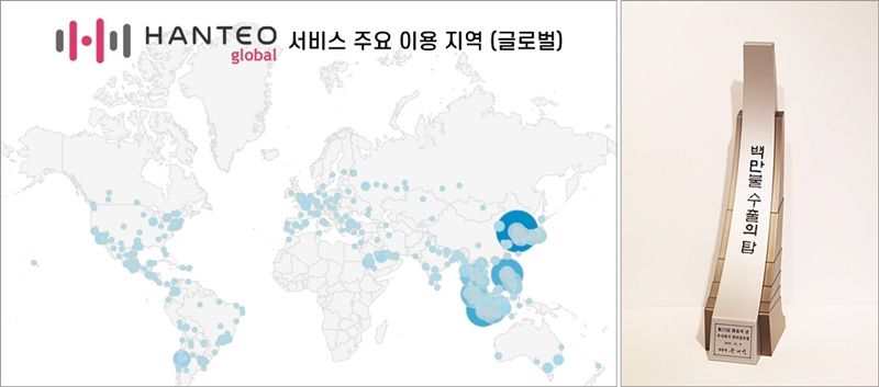 한터차트와 팬덤 앱 '후즈팬'으로 유명한 ㈜한터글로벌(대표이사 곽영호)이 '백만불 수출의 탑'을 수상했다.