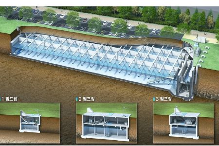 완층 저류시설은 사고로 발생되는 유해화학물질 유출수와 오염물질이 섞인 빗물이 하천으로 흘러 들어가는 것을 막는 수질오염 방지시설이다.