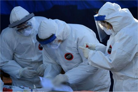 임시선별진료소에서 의료진이 검사를 진행하고 있다.(사진=황진환 기자)