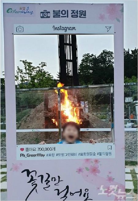 당시 전문가들은 매장량이 많이 않아 곧 꺼질 것으로 전망했지만 불은 계속 타올랐고, 포항시는 볼거리 제공을 위해 이 곳에 방화 유리 등을 설치해 ‘불의 정원’을 조성했다.
