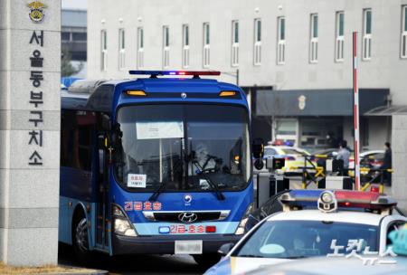 코로나19 집단감염이 발생한 동부구치소에 수감된 확진자들이 28일 서울 송파구 동부구치소에서 긴급호송 버스를 타고 청송군 경북 북부 제2교도소(청송교도소)로 이송되고 있다.