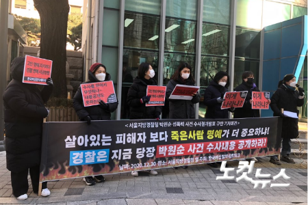 경찰이 고(故) 박원순 전 서울시장의 성추행 의혹에 대해 약 5개월 만에 '공소권 없음' 등 불기소 의견으로 수사를 마무리 지은 가운데 여성단체들은 "경찰은 피해자의 방패가 되기보다 정권의 지팡이가 되기로 작정한 모양"이라며 규탄에 나섰다.