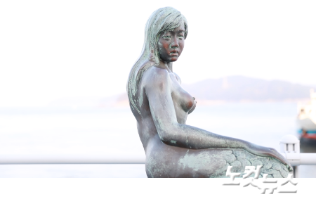 인어의 전설을 기리기 위해 만들어진 인어상. 노컷TV 영상 캡처