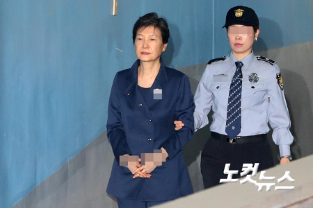구속 수감 후 공판에 출석하는 박근혜 전 대통령. 박종민 기자.