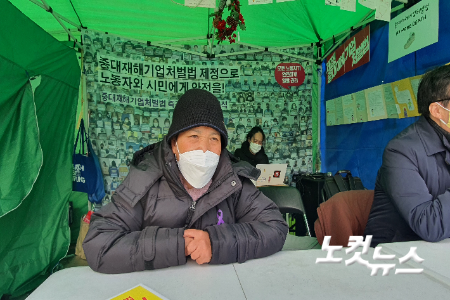 김미숙씨는 "중대재해기업처벌법 연내 통과를 위해 노력했지만, 무산됐고 이제는 회기 내에라도 제대로 된 법안이 통과되었으면 하는 바람으로 농성을 이어가고 있다"고 말했다.