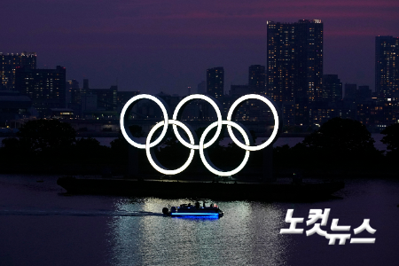 도쿄 오다이바 해상공원을 밝히는 형광 올림픽 오륜. 연합뉴스