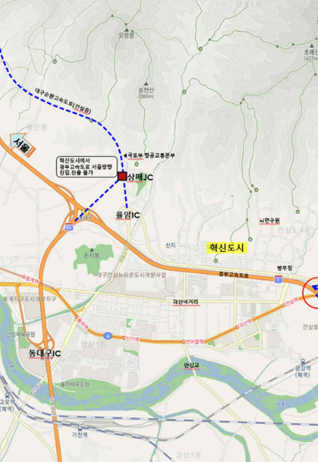 대구시에 따르면 현재 대구 혁신도시와 안심 지역 주민들은 동대구IC까지 교통 혼잡이 극심한 안심로 8km 거리를 15분 이상 우회해야 경부고속도로를 이용할 수 있는 등 큰 불편을 겪고 있다.