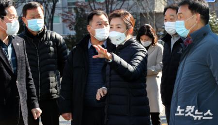 국민의힘 서울시장 경선후보인 나경원 전 의원이 4일 서울 성북구 정릉동의 한 시내버스 회사에서 버스운송 안전 및 현안을 점검하며 관계자들과 대화하고 있다.